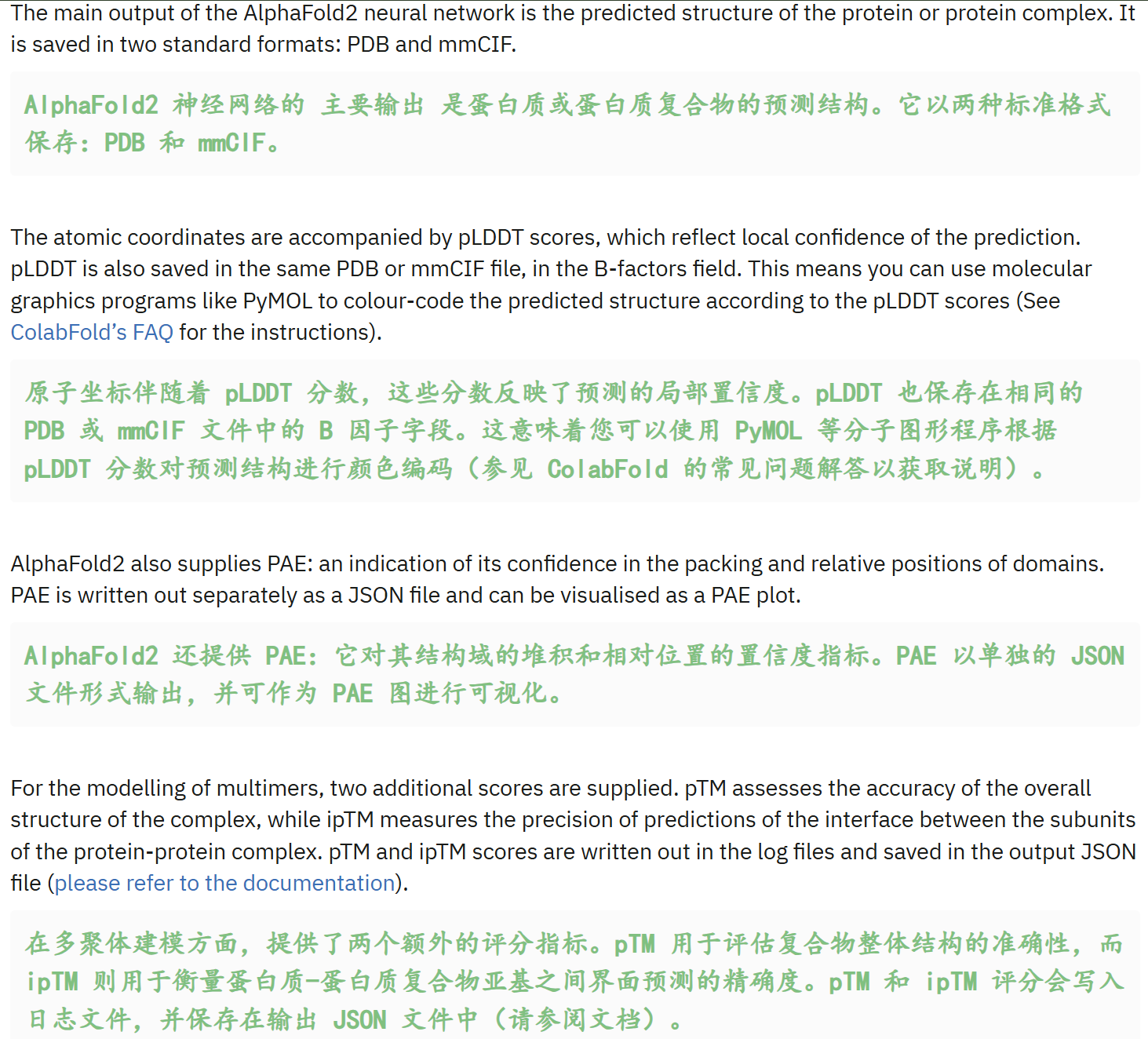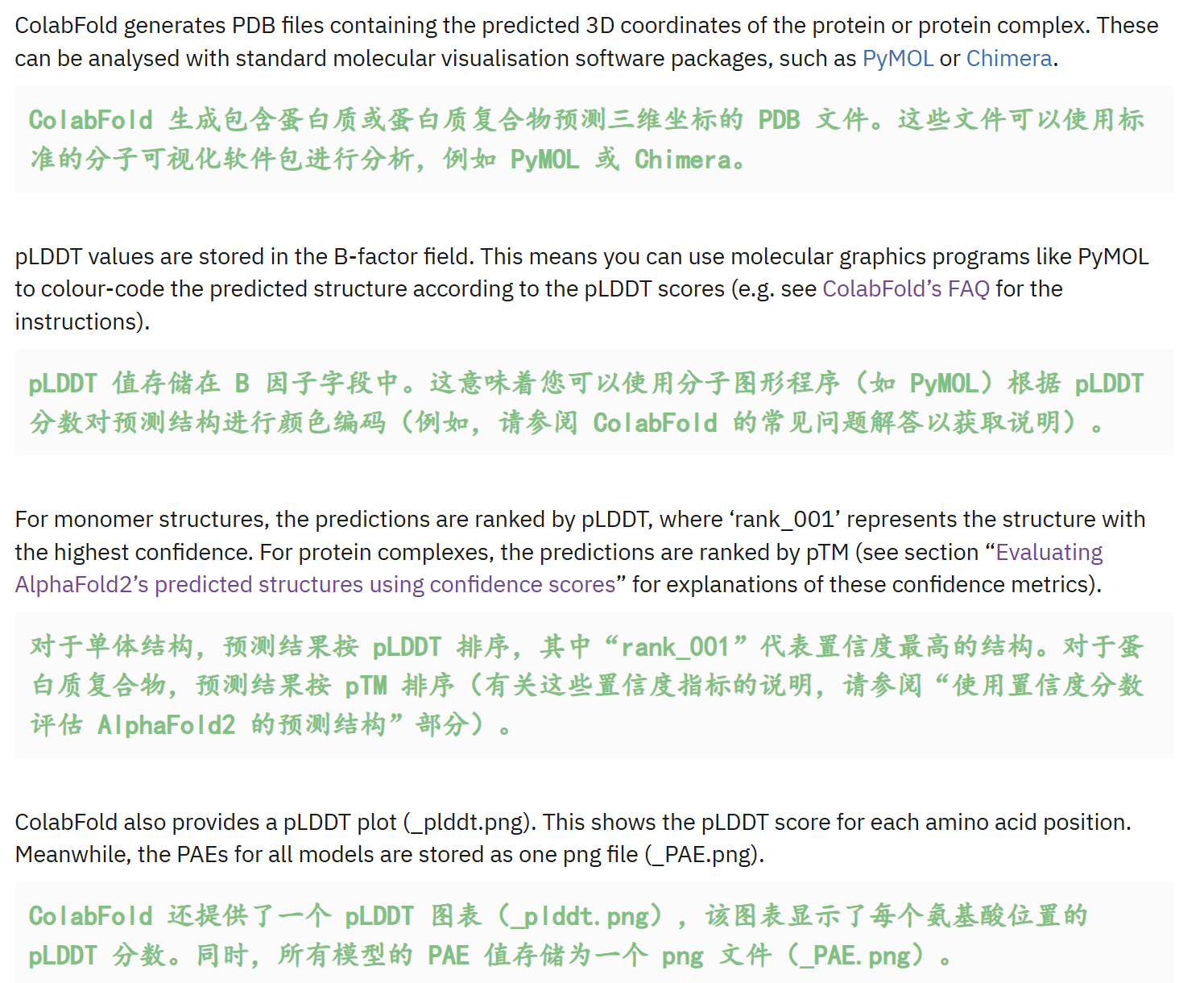 在Alphafold2刚出来的时候,我就用过ColabFold,只需要顺次执行所有notebook中的cell即可,也是给出5个候选的model预测结果,当时预测一个结构,时间大概在半小时左右(因为涉及到google colab的gpu申请资源吃紧,在批量处理上虽然比web server好多了,但是实际操作效率不见得有多高,但至少人人都能做结构预测)
