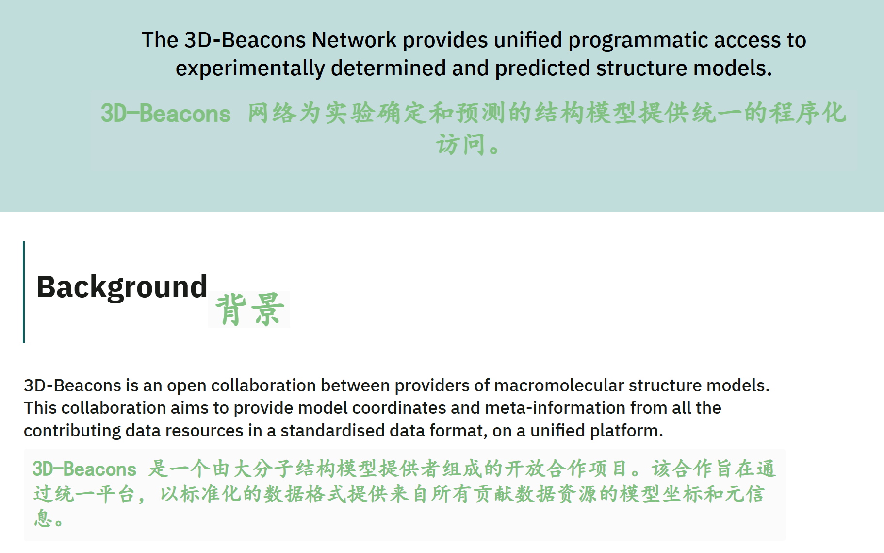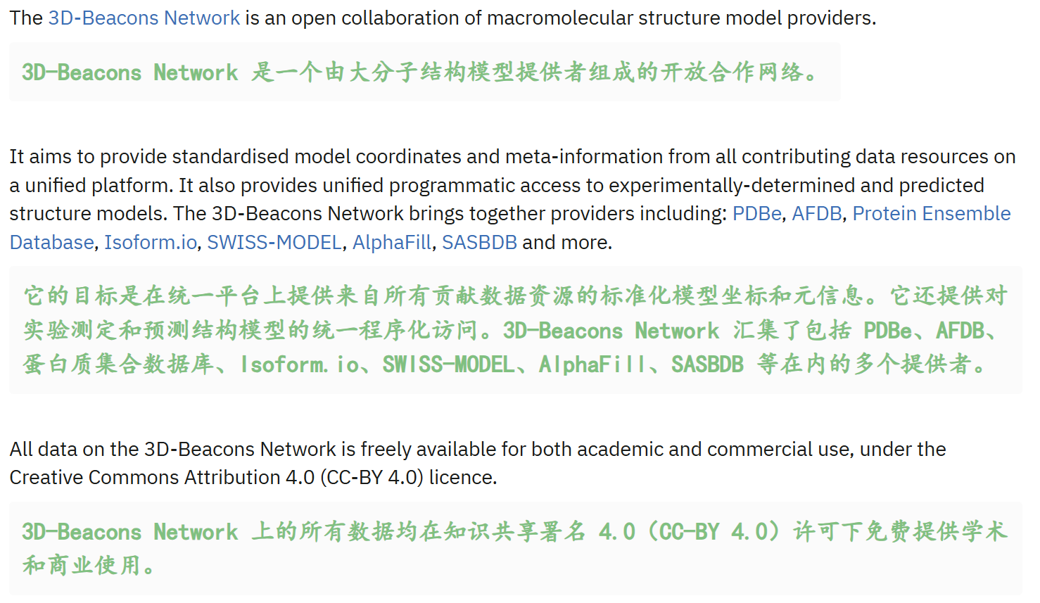 总的来说,3D-Beacons Network 是一个开放性的大分子结构提供合作网络。我们可以比较来自不同提供者的实验测定和预测的大分子结构,包括 AlphaFold 数据库。