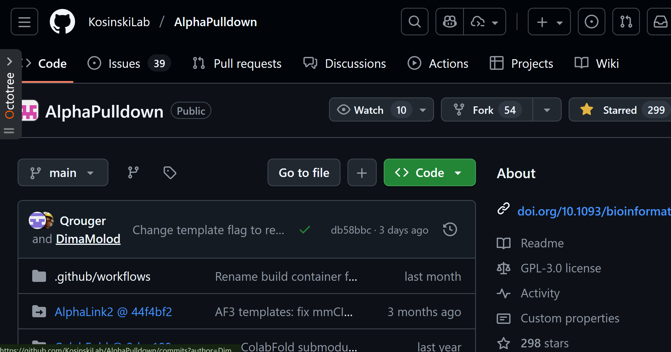 预测蛋白质互作的AlphaPullDown:https://github.com/KosinskiLab/AlphaPulldown/