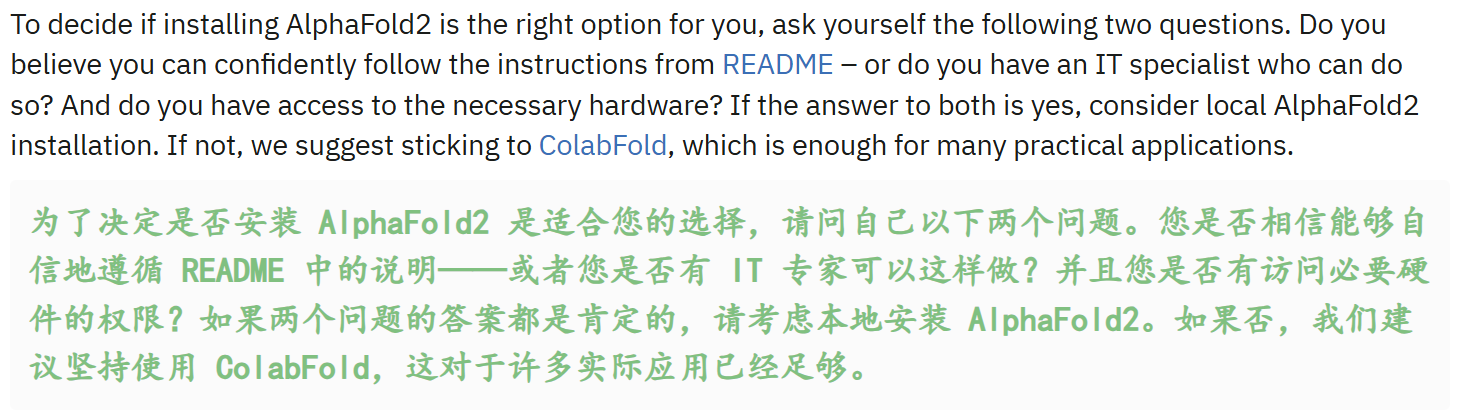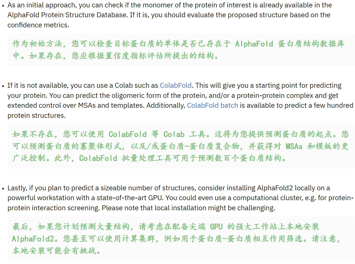 总之,官方推荐,对于计算资源比较吃紧的lab,其实还是以使用ColabFold为主,毕竟也有很多顶刊用的也是ColabFold,