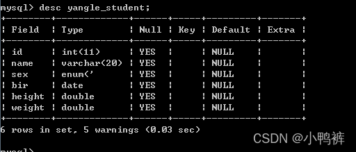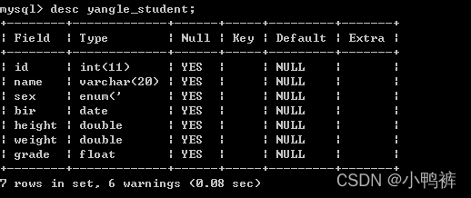 10.创建表名为自己的姓名全拼_stu,表中包含字段及字段数据类型如下: