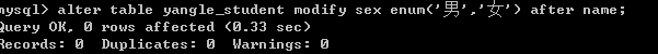 18.修改字段位置将自己的姓名全拼_student表sex字段放在name字段之后