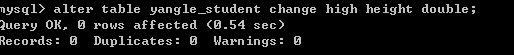 15.修改自己的姓名全拼_student表中high字段名为height,数据类型改为double