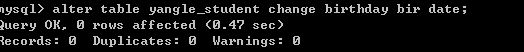 14.修改自己的姓名全拼_student表中birthday字段名为bir,数据类型保持不变