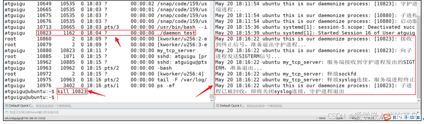 SIGTERM:SIGTERM信号是终止信号,用于请求守护进程优雅地终止。通过命令行执行kill <pid>命令可以发送SIGTERM信号,接收到这个信号之后,守护进程终止子进程,并清理回收资源,最后退出。