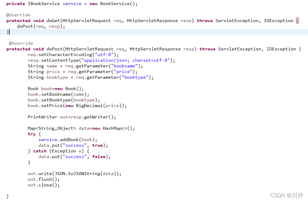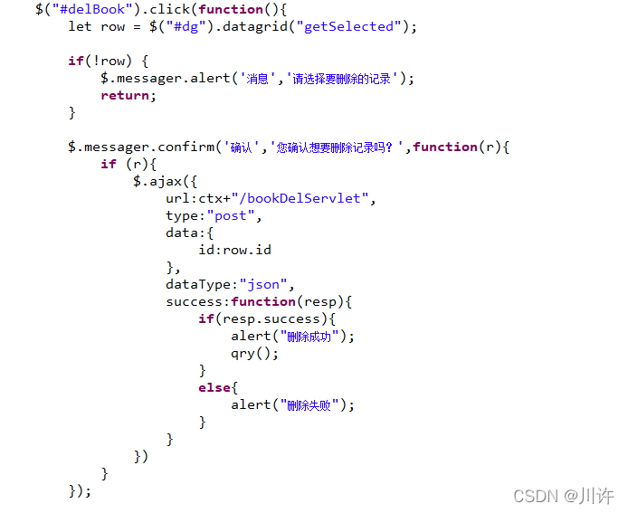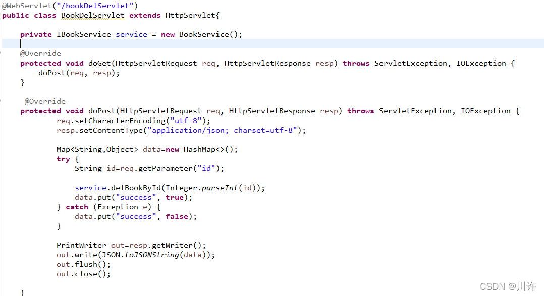 通过上述的@WebServlet("/bookDelServlet")和/bookDelServlet用Ajax联系起来