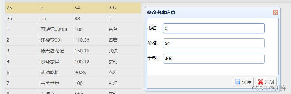 只不过在选中行的时候点击修改调用方法时会传入选中行