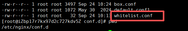 在配置文件中加上include /etc/nginx/conf.d/whitelist.conf;whitelist.conf替换成blacklist.conf就是黑名单