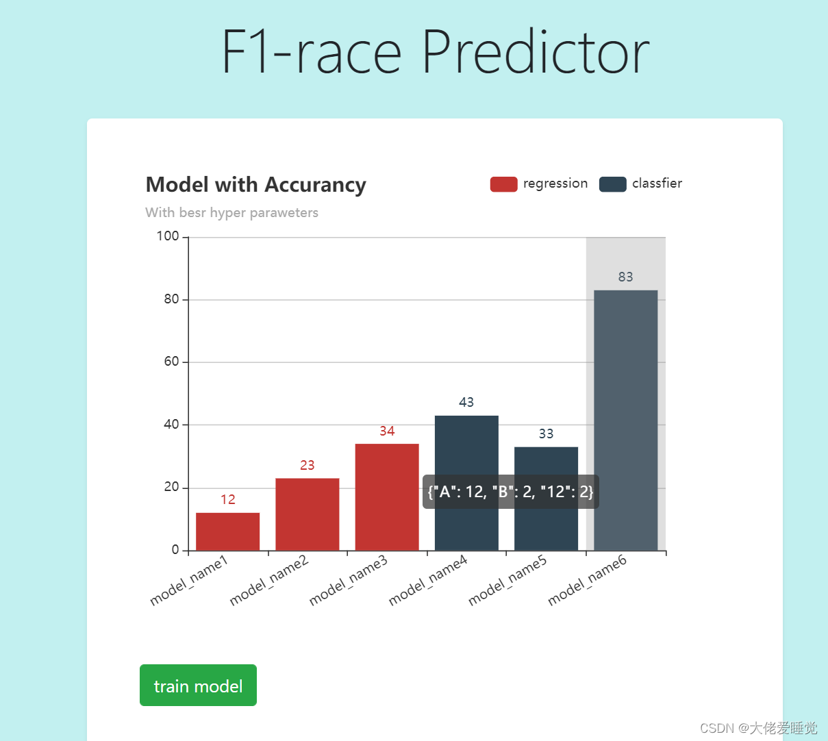 一个柱形图,悬浮之后出现的是自定义的内容,同时通过颜色分类模型类别