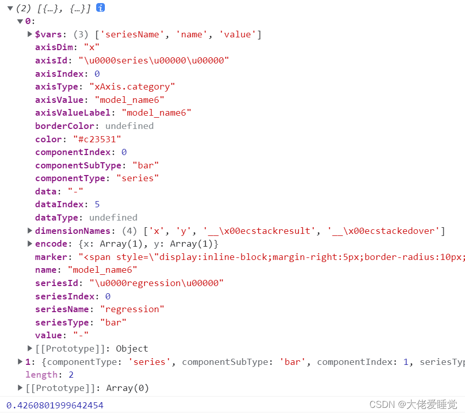 这里就引入出echarts和js配合的一个很强大的功能:只要是echarts里面的数据,都可以通过函数获取返回值,而只要是获取的返回值,都可以通过ajax去后台获取–当然这里给了我们一个很大的便利:可以通过一个内置的formatter方法传递柱子的一些参数