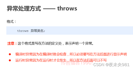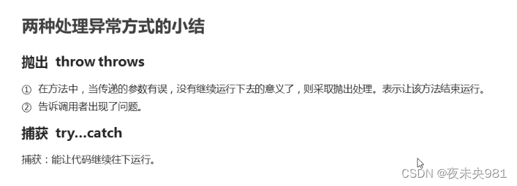1.什么时候抛出异常(当方法的参数有问题,或者中间调用方法的返回值有问题,要throw抛出异常,告诉调用者出现了异常)