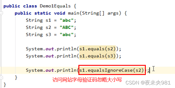 字符串的比较忽略大小写(场景:网站的验证码)
