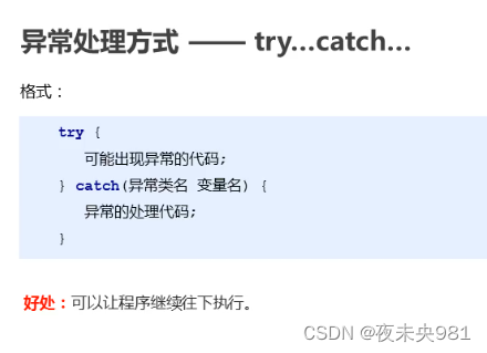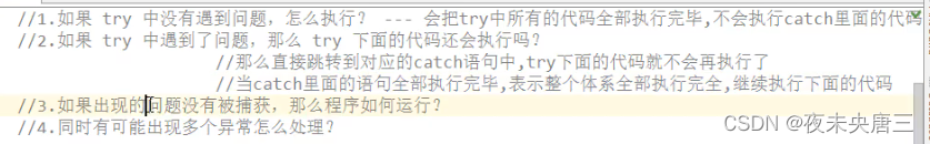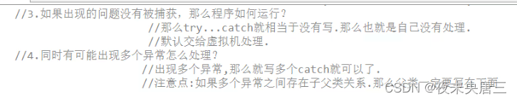 2.什么时候处理异常(调用者的角度,当某段代码可能出现异常,try...catch..要捕获异常自己处理)