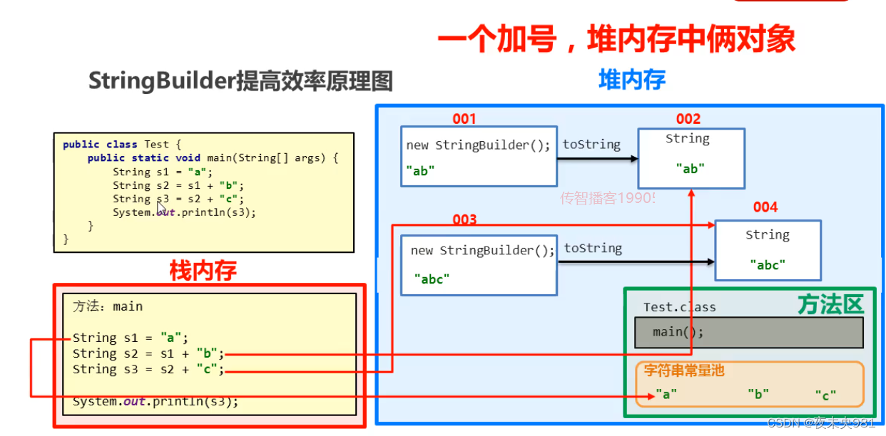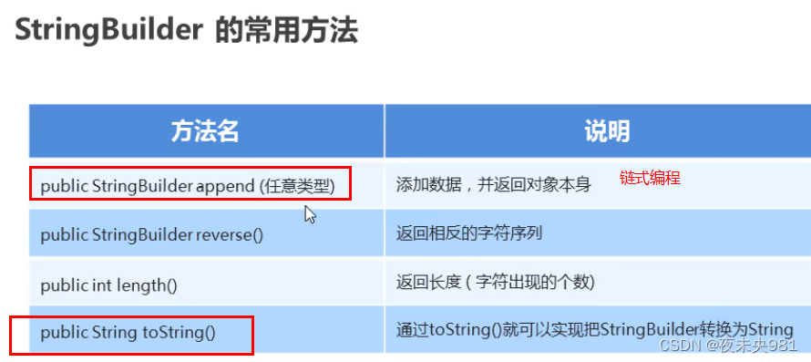 StringBuilder类也代表可变字符串对象。实际上,StringBuilder和StringBuffer基本相似,两个类的构造器和方法也基本相同。不同的是:StringBuffer是线程安全的,而StringBuilder则没有实现线程安全功能,所以性能略高。