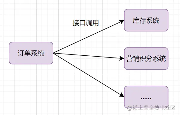 - 如果业务又接入一个营销积分服务,那订单下游系统要扩充,如果未来接入越来越多的下游系统,那订单系统代码需要经常修改