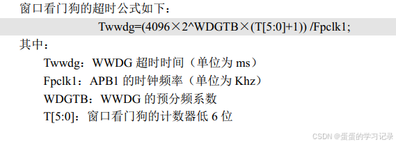 窗口看门狗由APB1时钟分频作为时钟提供,通过编程配置来检测应用程序是否过早/迟操作,其要求在某个计数区间内喂狗。如果没到区间喂狗/超出区间都会触发复位信号。同时在即将超出区间触发复位之前,可以开启提前唤醒中断(EWI)在复位前进行数据保存等抢救工作。这是独立看门狗所没有的功能。