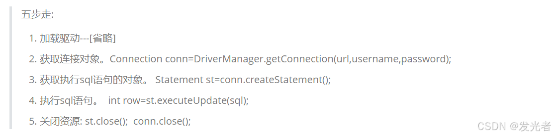 1.直接代码演示: 显示五步驱动的代码+ 展示增删改查的操作