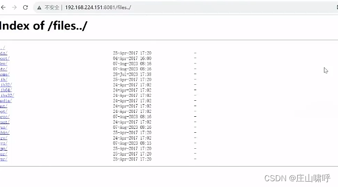 分析:当我们写成/files../时他访问的并不是home,而是访问的home/..,这样的就会让我们本身进入了home目录下后又重新跳转到根路径下。