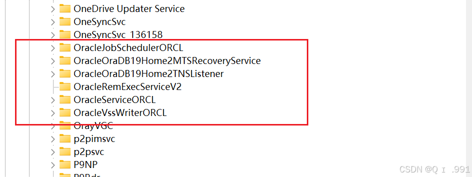 再进入该目录下SYSTEM ---> SERVICES找到oracle相关注册表全部删除后。