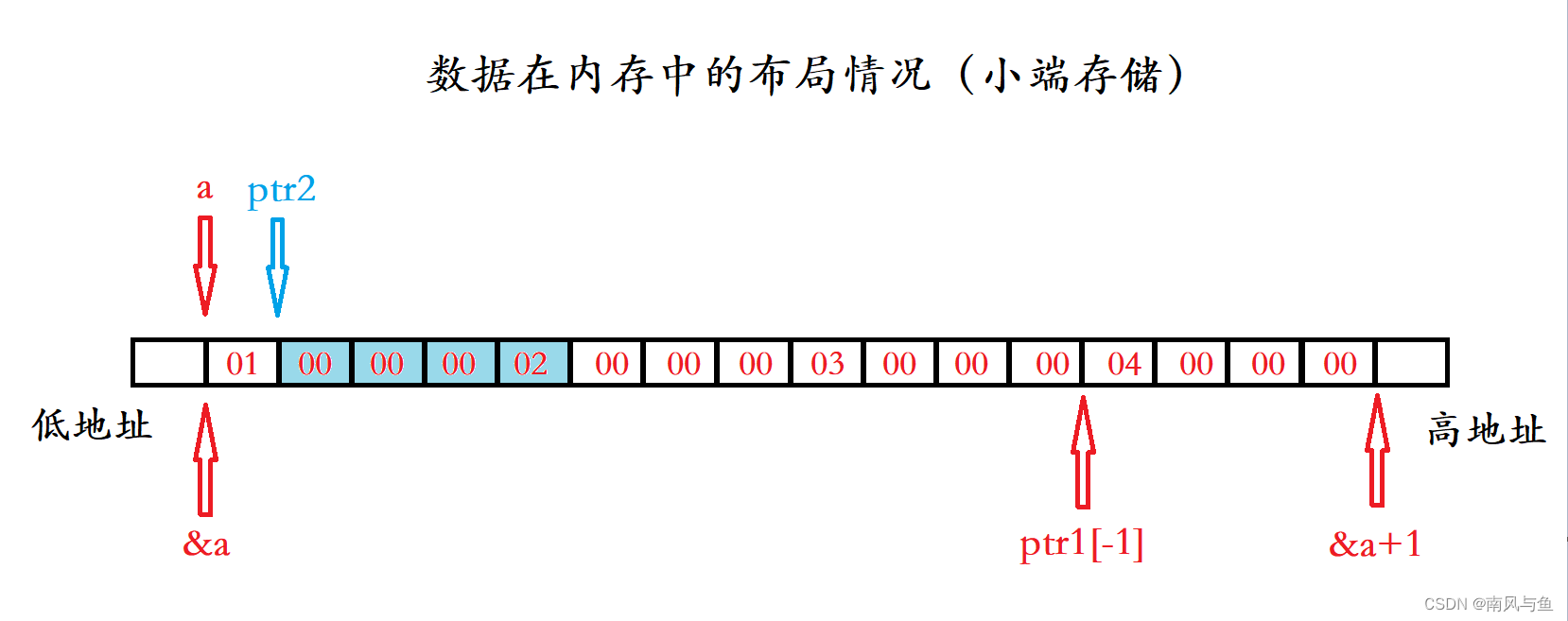 2.这里的a为数组名,即数组首元素的地址,强制类型转换为整型,+1就是加上数值1,即1个字节,ptr2就指向了第一个元素第二个字节处,对其解引用操作,访问4个字节的位置,因为数组在内存中是连续存储的,且是小端存储,即02 00 00 00,所以将其以%x的形式打印就为2000000