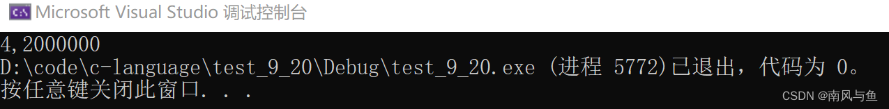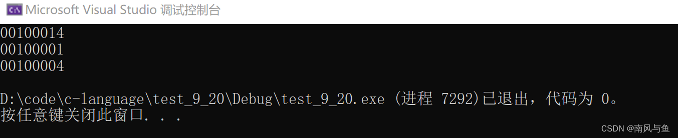 2.观察上图,我们可以看见&p[4][2]和&a[4][2]在内存中所指向的位置,这两者都是指针,指针减去指针得到的是中间元素的个数,因为随着数组下标的增长地址是由低到高变化的,所以%d打印的结果就为-4。%p打印的是地址,认为内存中存储的补码就是地址,所以结果为FFFFFFFC