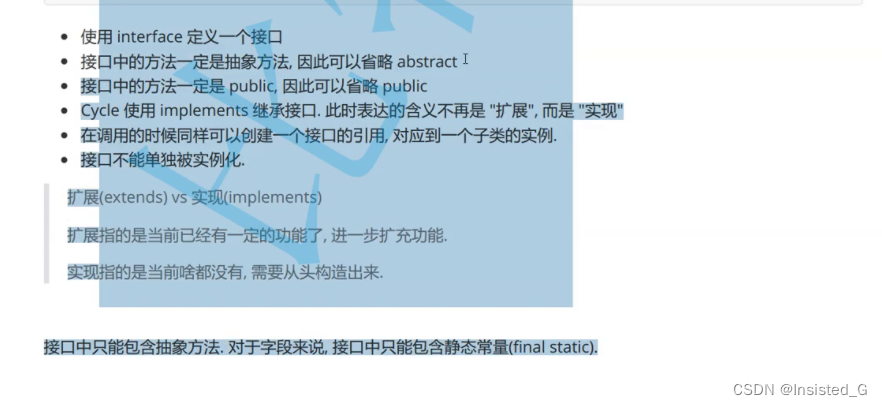 接口类不能直接new实例化,因为可以说它是更进一步的abstract类,所以不能被直接实例化,但是可以由它的子类向上实例化