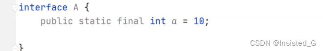 接口中定义的属性是public static final 的,由于有final所以是一个常量,要被初始化