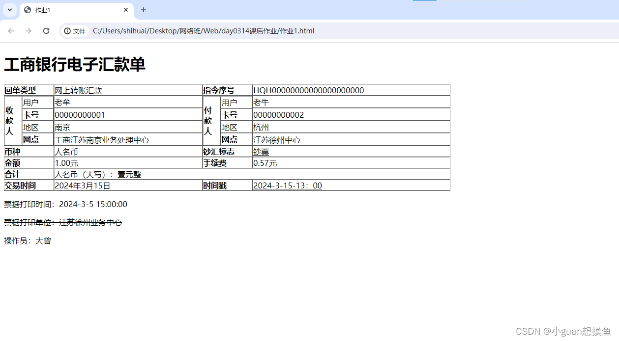 HTML示例:银行转账汇款单、诗词展示与电影推荐页面,