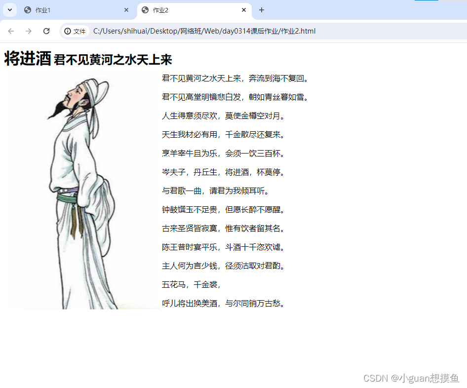 <td rowspan="13"><img src="img\libai.png" /> </td><td>君不见黄河之水天上来,奔流到海不复回。</td>