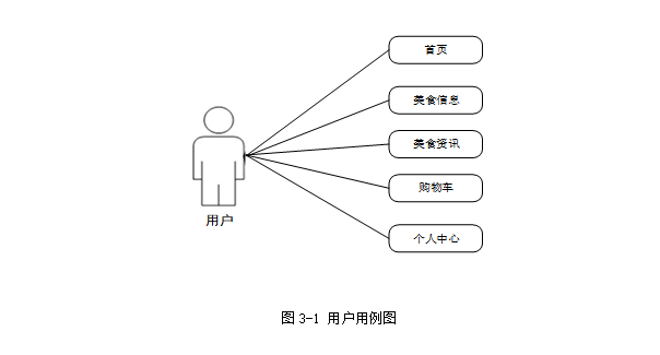 (1)、用户关键功能包含用户注册登录,个人信息修改,查看美食信息、美食资讯、购物车等有关信息,并进行详细操作。用户用例如下: