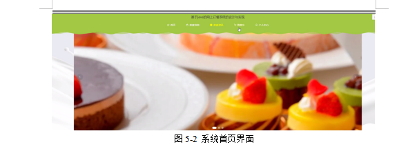 当用户打开系统的网址后,首先看到的就是首页界面。在这里,用户能够看到网上订餐系统的导航条显示首页、美食信息、美食资讯、购物车、个人中心等。系统首页界面如图5-2所示: