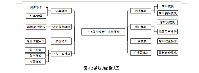 系统的主要模块有用户模块、商品模块、公告模块、订单模块、轮播图模块、关于我们模块等。用户模块包括管理员模块和注册用户模块。模块的基本操作都是以增删改查为主,有的模块涉及得较多,比如所有的四种操作都有,且查询的方式较多,有的则是简单的按照id查询就可以了。