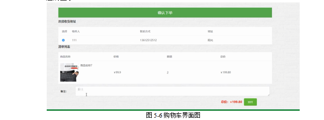 用户点击物品之后,会展示商品详情信息,商品详情信息中有一个操作列表,包括有加入购物车与提交订单,在跳转之前,系统会在后台获取到该物品的id信息,然后通过查询操作,然后展示到购物车页面。如果还需要购买物品,点击继续购物就可以,也可以选择下单结算,下单结算之后需要支付费用,完成之后则需要填写送货地址。如下图是购物车页面,当点击对应商品的选择框之后,总价才会进行相应的显示。