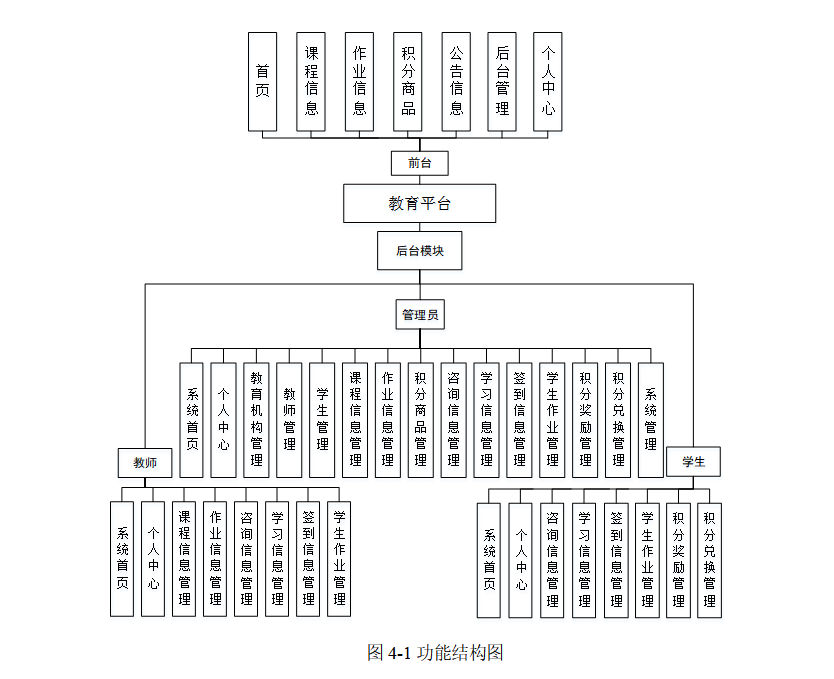 此系统功能较为全面如下图系统功能结构如图4-1所示。