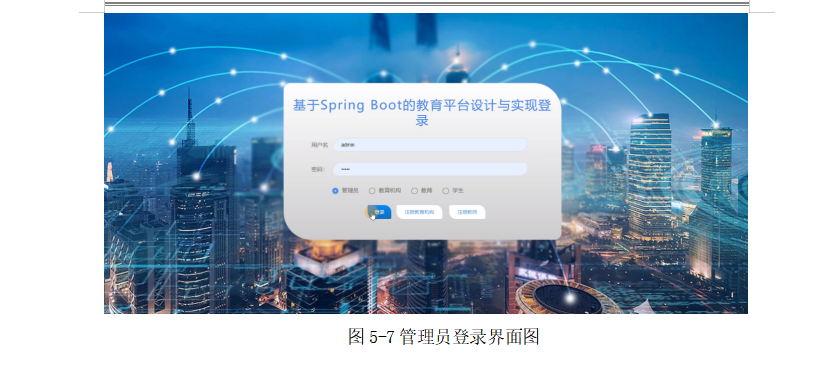 管理员进行登录,进入系统前在登录页面根据要求填写用户名和密码、验证码等信息,点击登录操作,如图5-7所示。