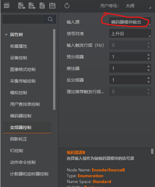 注意,编码器设置成线路几都仅是在MVS里面拍照测试,在实际运行中,相机会根据伺服电机不同的轴发出的脉冲信号自己切换编码器源。我们只需要根据那个轴移动设置成对应的编码器源即可。