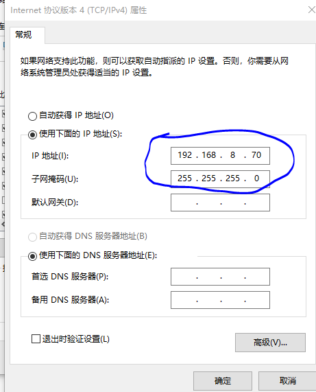 5、修改网口ip,注意不要和其他设备冲突了,例如PLC或伺服电机等设备冲突。