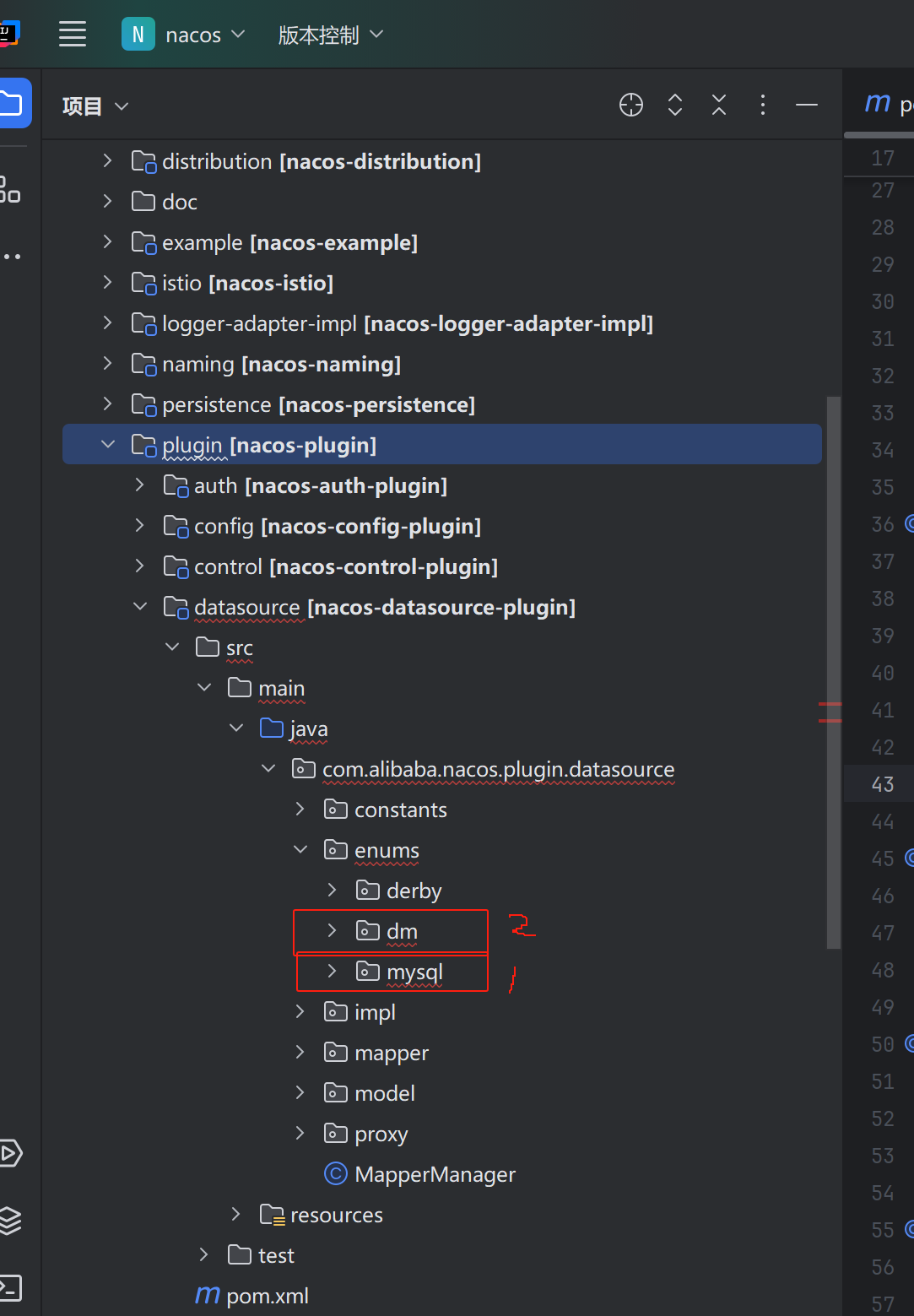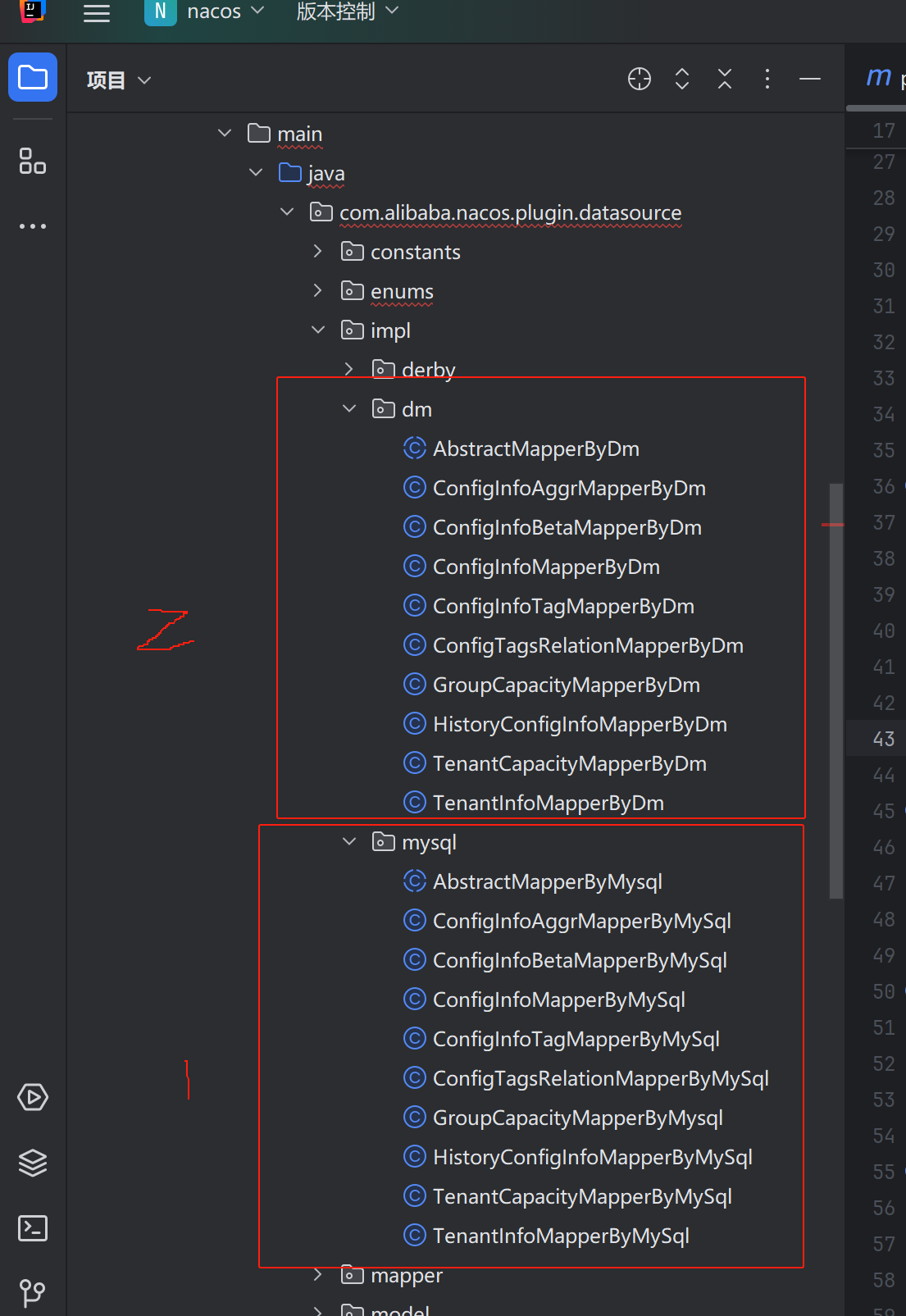 ③将dm目录里所有java文件的com.alibaba.nacos.plugin.datasource.impl.mysql