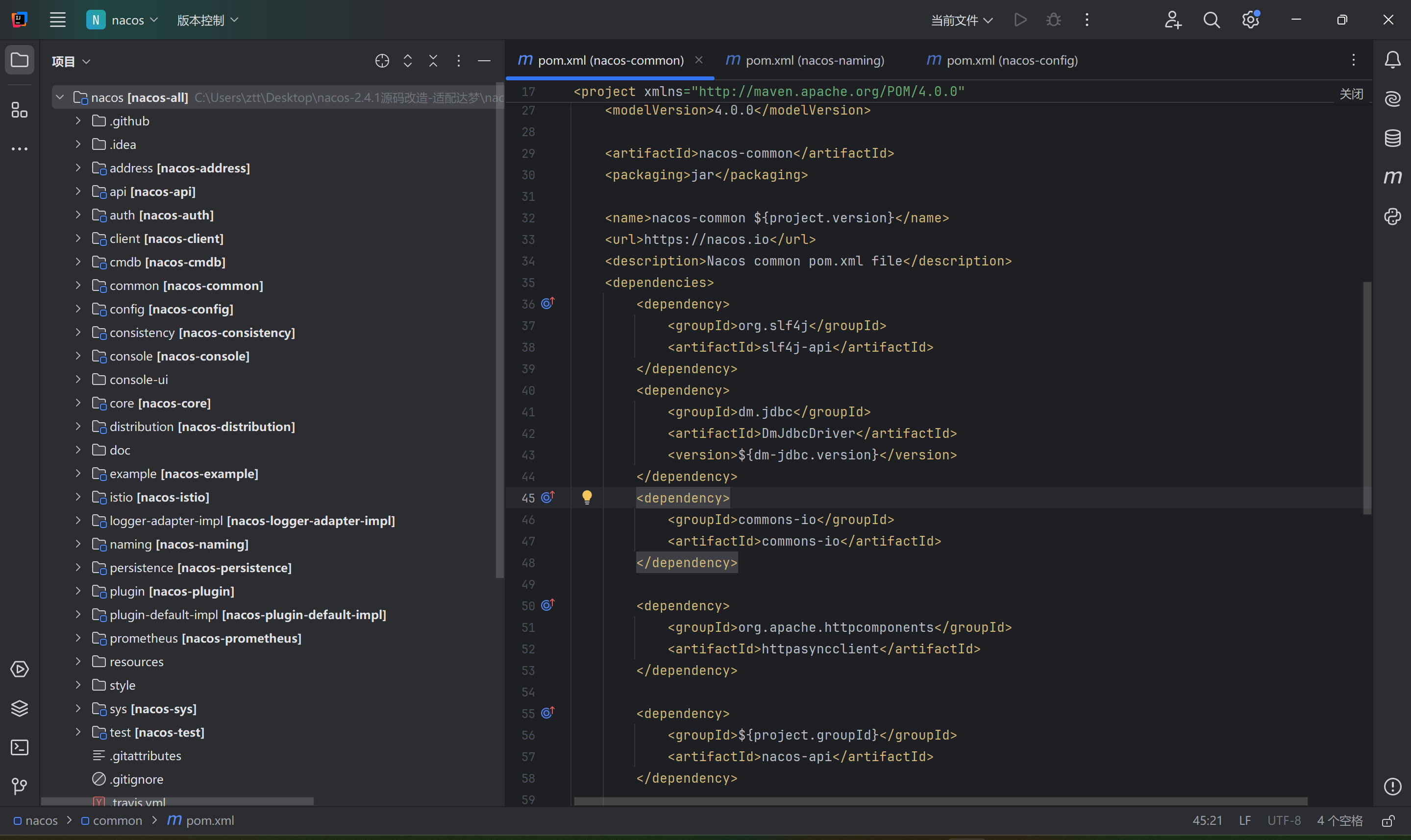 2、nacos-common、nacos-naming、nacos-config的pom.xml项目配置文件