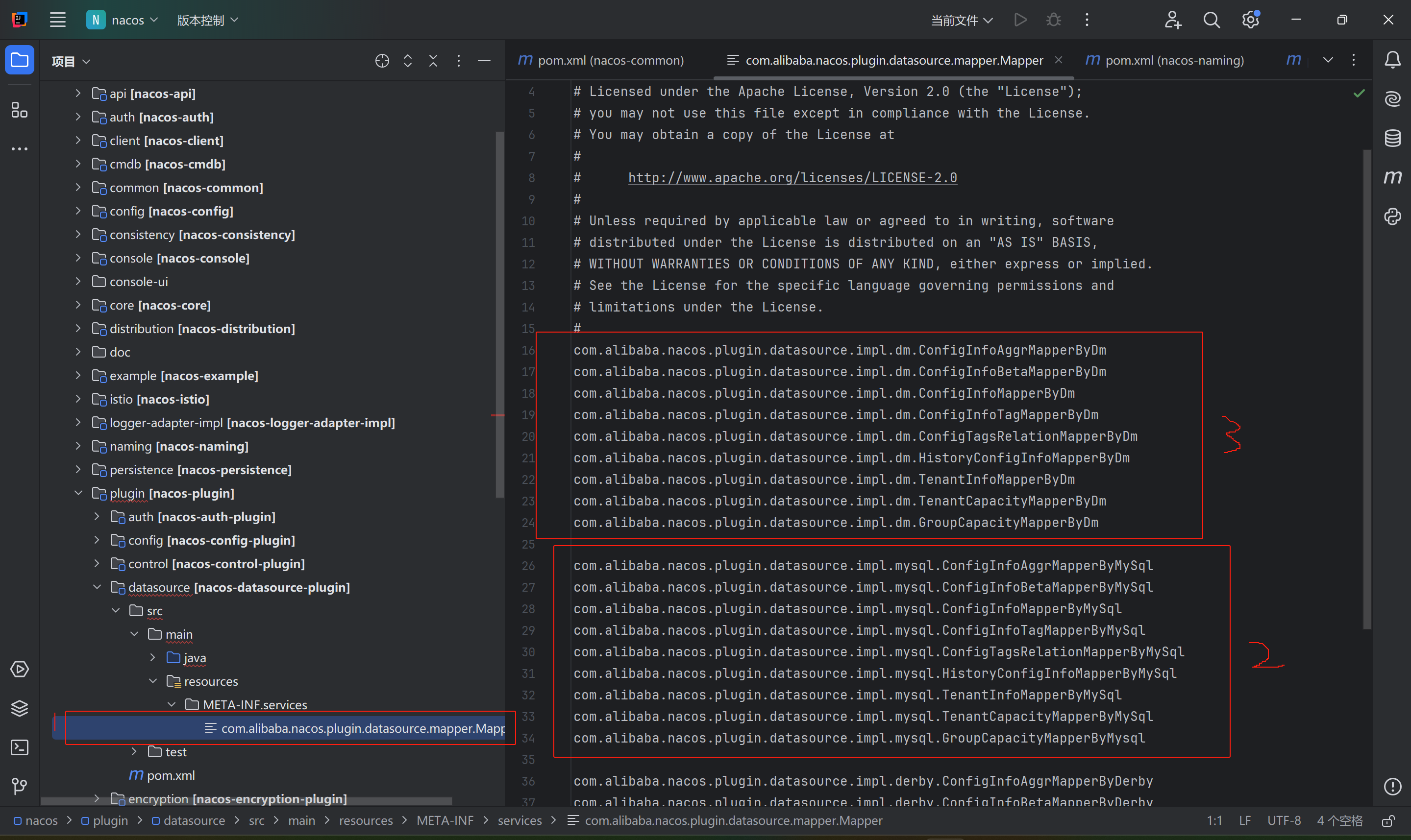 源码包路径:\nacos\plugin\datasource\src\main\resources\META-INF\services\com.alibaba.nacos.plugin.datasource.mapper.Mapper