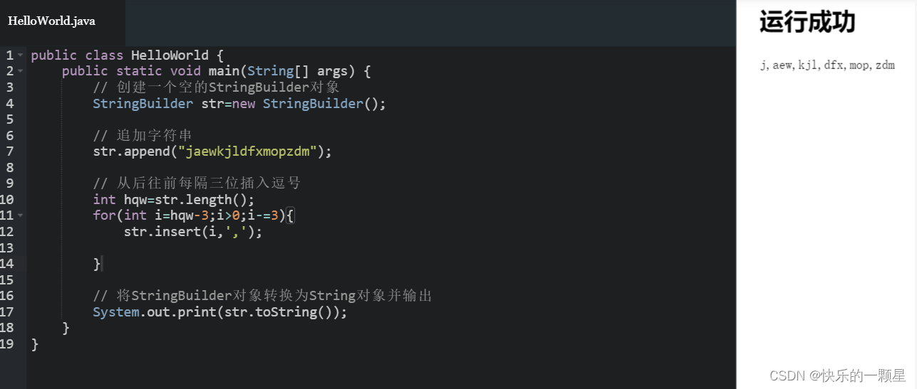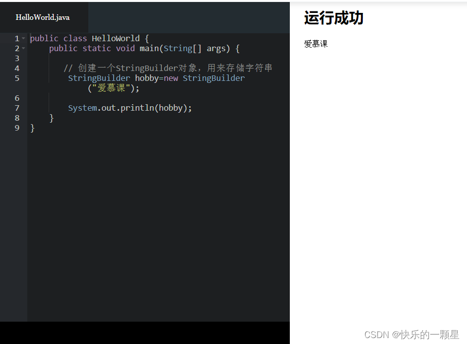 那么如何定义 StringBuilder 类的对象呢? 我们来看下面的代码: