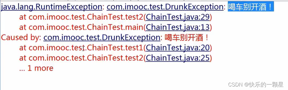 * test2():调用test1(),“喝大了”异常,并且包换成运行时异常,
