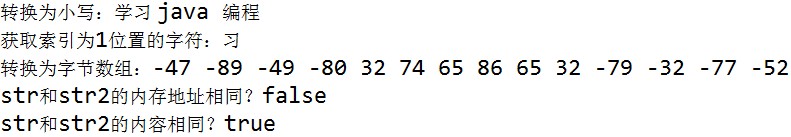 PS:字节是计算机存储信息的基本单位,1 个字节等于 8 位, gbk 编码中 1 个汉字字符存储需要 2 个字节,1 个英文字符存储需要 1 个字节。所以我们看到上面的程序运行结果中,每个汉字对应两个字节值,如“学”对应 “-47 -89” ,而英文字母 “J” 对应 “74” 。同时,我们还发现汉字对应的字节值为负数,原因在于每个字节是 8 位,最大值不能超过 127,而汉字转换为字节后超过 127,如果超过就会溢出,以负数的形式显示。(关于编码,我们在后面课程中会详细介绍,小小期待哦~~)