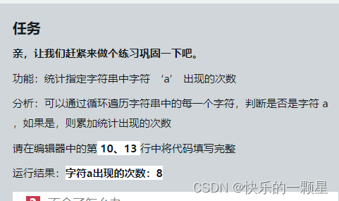 // 循环遍历每个字符,判断是否是字符 a ,如果是,累加次数