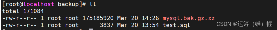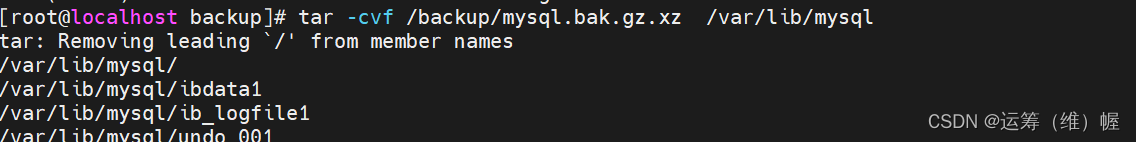 (5)进入/var/lib/mysql目录中打包所有文件,tar -jcvf /backup/mysql.bak.gz.xz /var/lib/mysql