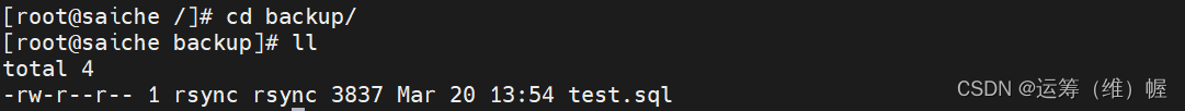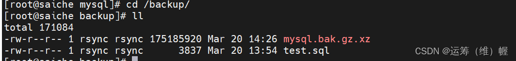 (3)将客户端备份的数据库信息传递到服务端备份的目录下并查看