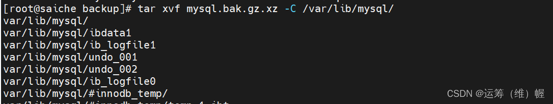 tar xvf mysql.bak.gz.xz -C /var/lib/mysql/,提前把/var/lib/mysql/清空