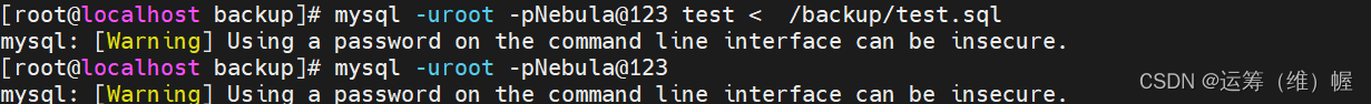 mysql -uroot -pNebula@123 test < /bakcup/test.sql