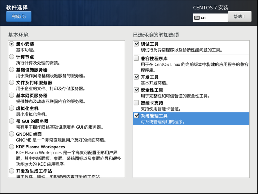 13、点击软件选择,选择最小安装,在已选环境的附加选项中根据自己需要进行选择