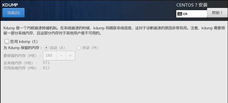 17、点击KDUMP,将启用kdump勾选取消,点击完成